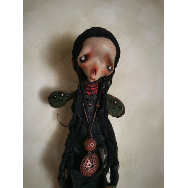Materials used: Polymer clay, cotton fabric, beads, wire, matt varnish