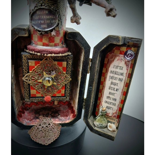 • Offering Ritual: Place a candle on Bellow's tongue , or offer him something to swallow, ...or dare to offer your fingers to the clown's gaping mouth to unearth a hidden, haunting melody.(there is a secret music box)